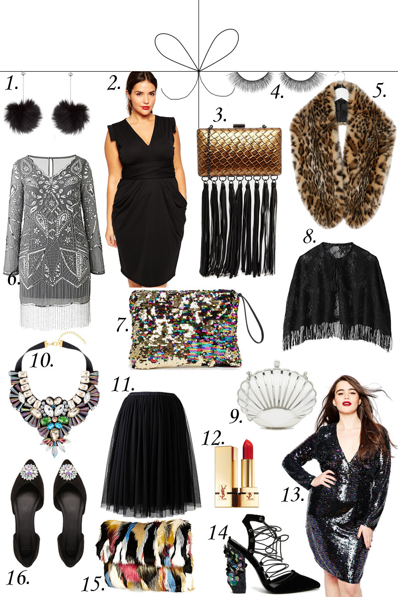 I've put together a selection of my favourite plus size party frocks, glittery heels, outlandish lashes and sassy clutches... everything you need to get you party ready!